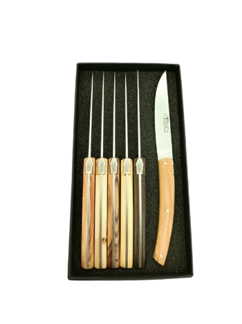 La Fourmi – Coffret 6 couteaux steack Campagne – Lame lisse – Olivier